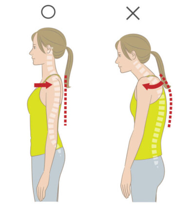 猫背や前かがみ姿勢では首や肩が緊張し、