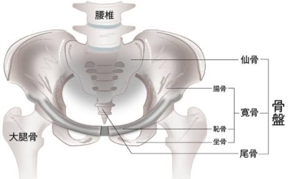 骨盤は左右の寛骨と仙骨、尾骨の3つの骨で形成されて身体の中で唯一上半身と下半身を連結している部位になります。