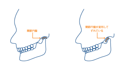 顎関節内部の関節円板がずれている時に、あごが動いた際に引っかかって音がすることや、顎関節を構成している骨の形が変化して、こすれあったような音がすることがあります。